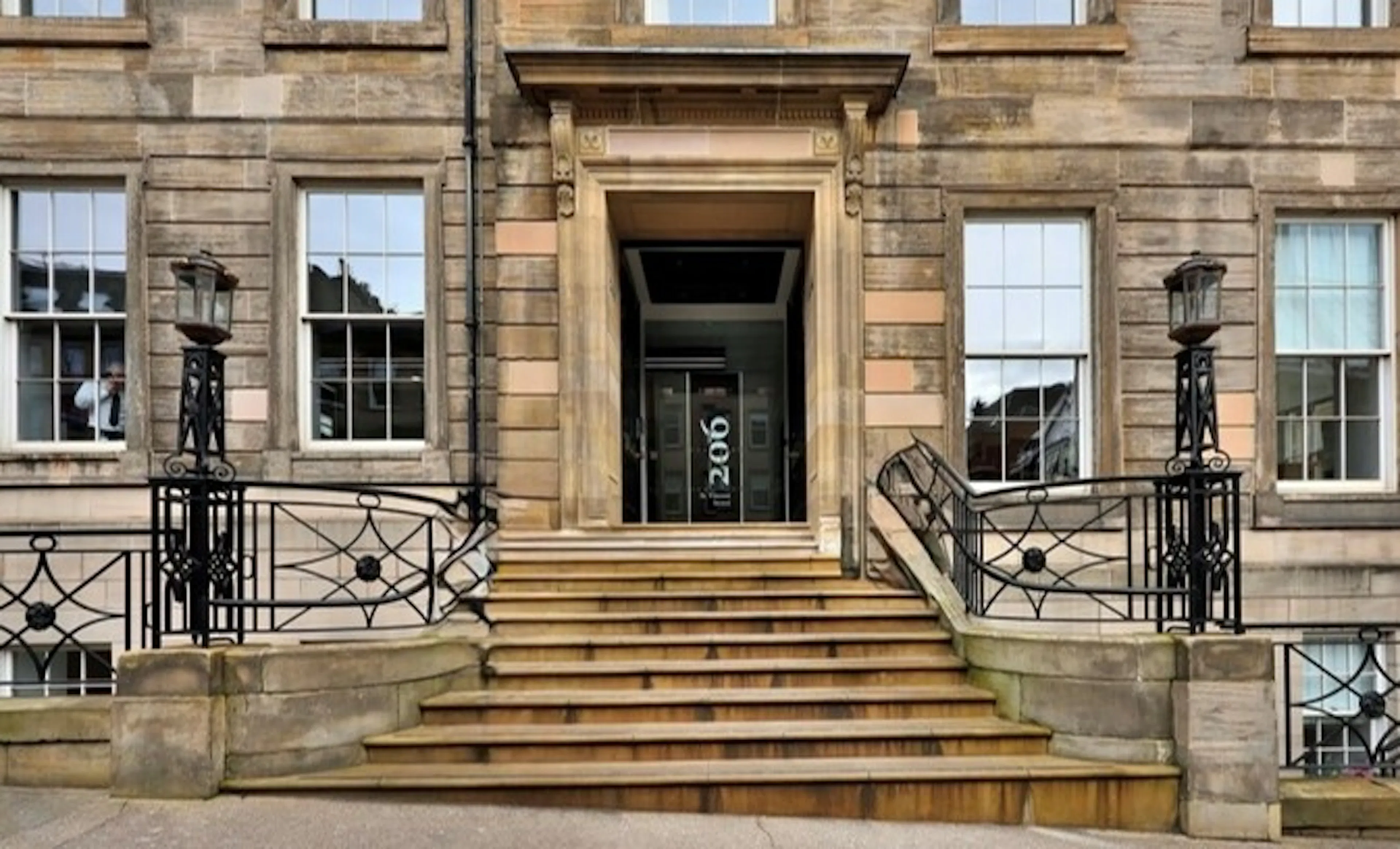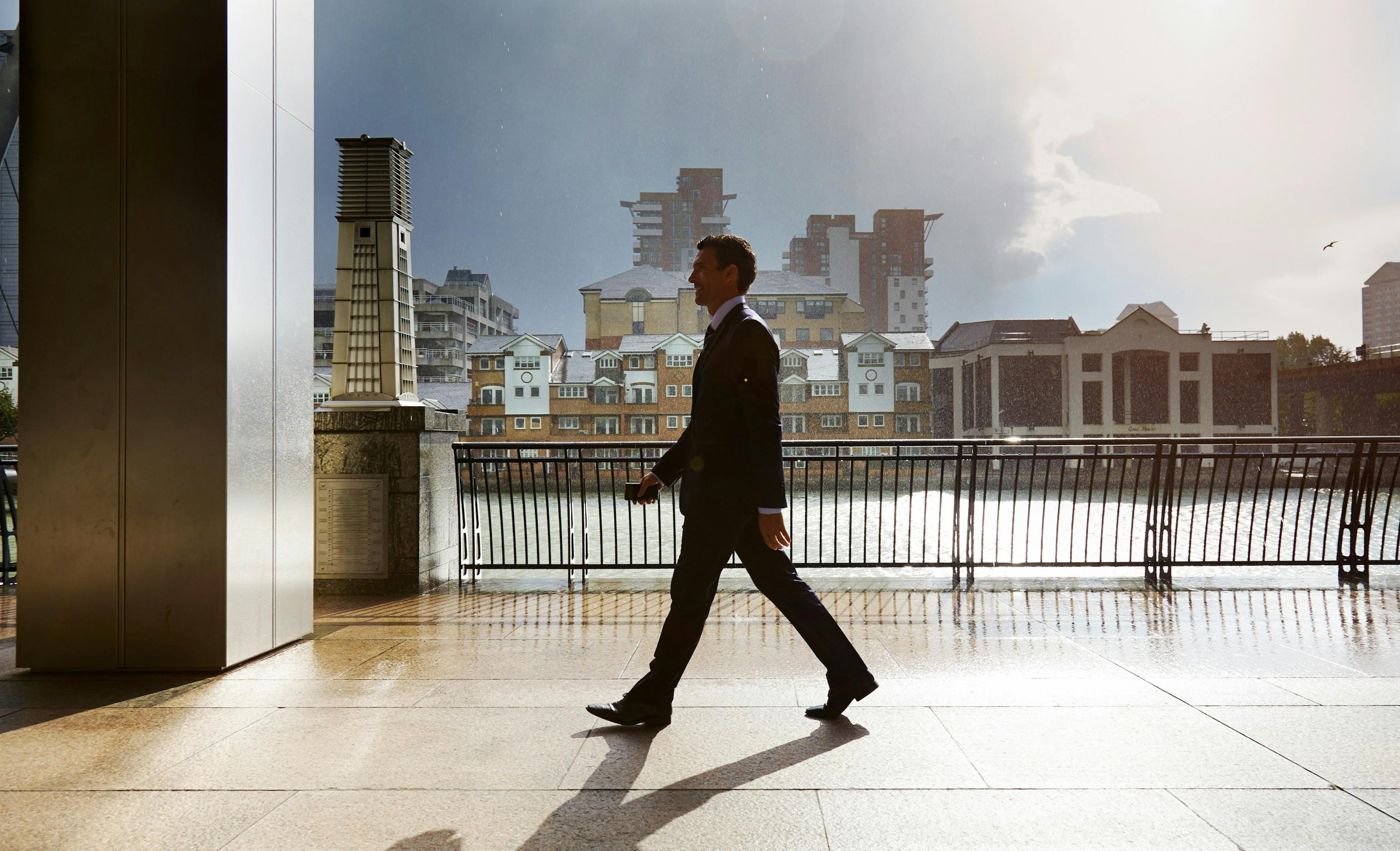 Business person looking out the window