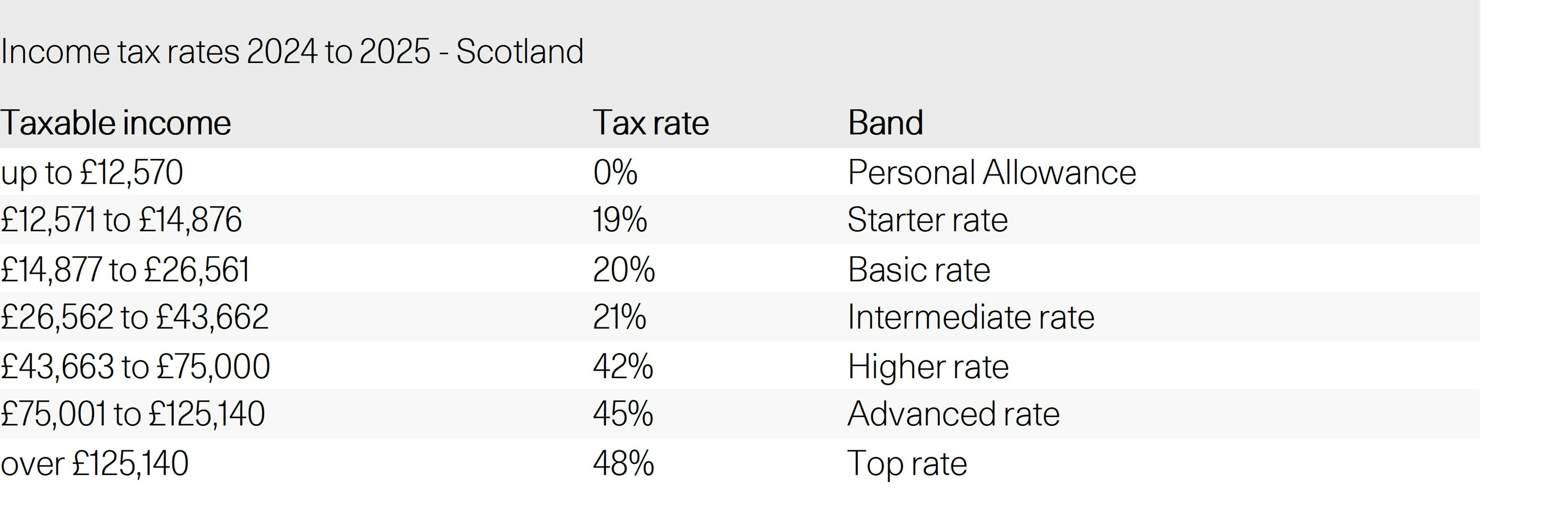 Scottish taxpayers should be aware that they are subject to six tax bands rather than the three that exist elsewhere in the United Kingdom.