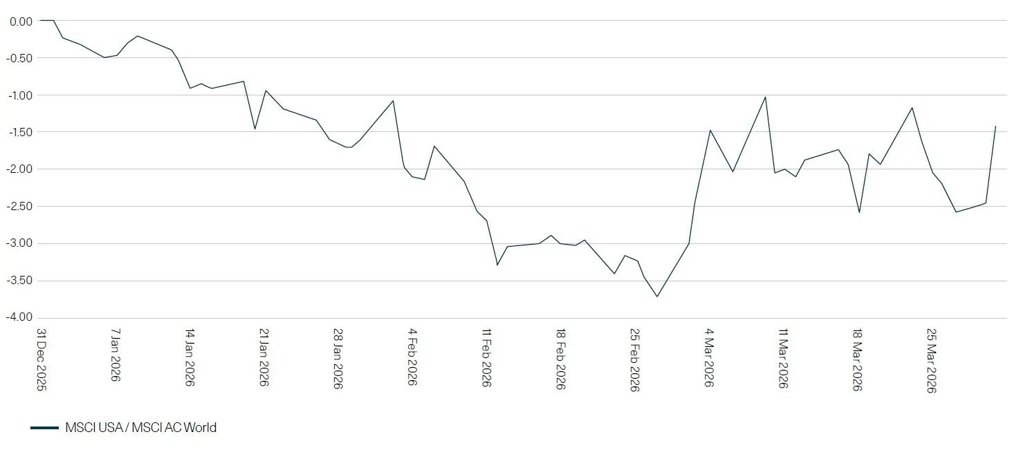 Until the outbreak of war, equities were doing well as the US economy was chugging along, bond yields were falling and corporate results were coming in line with, or even slightly ahead of expectations. On initial hostilities, markets were not unduly affected because it looked like there was every chance this would be a short affair like January’s operation in Venezuela or the bombing of Iran last June. However, as it become clear that regime change or unconditional surrender by Iran was not going to materialise quickly (if at all), world equities fell nearly 10% over the next four weeks. The effect of rising bond yields on valuations probably accounts for most of this decline because, as yet, aggregate earnings expectations have not been downgraded.