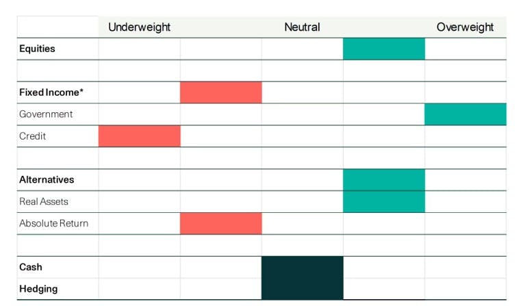 - Government bonds appear more attractive than credit given narrow spreads.
