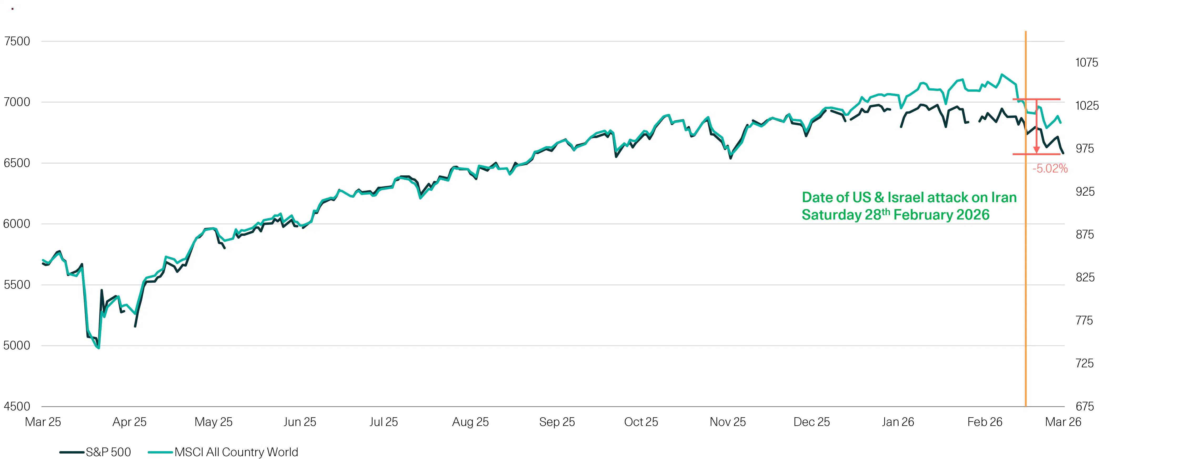 In the Multi-Asset Income Fund, we took 3% out of equity risk the day before the attack on Iran, not because we anticipated the war, but because we could see inflationary pressures building in the US while the market was pricing a very dovish outlook from the Federal Reserve. In the following weeks, we have reduced equities further, taking a full 5% out of equities. Similarly, in the Multi-Asset Fund range we have taken risk off the table, bringing the fund from slightly overweight risk at the beginning of the year to ~2.5% underweight equities across the piece as I write.