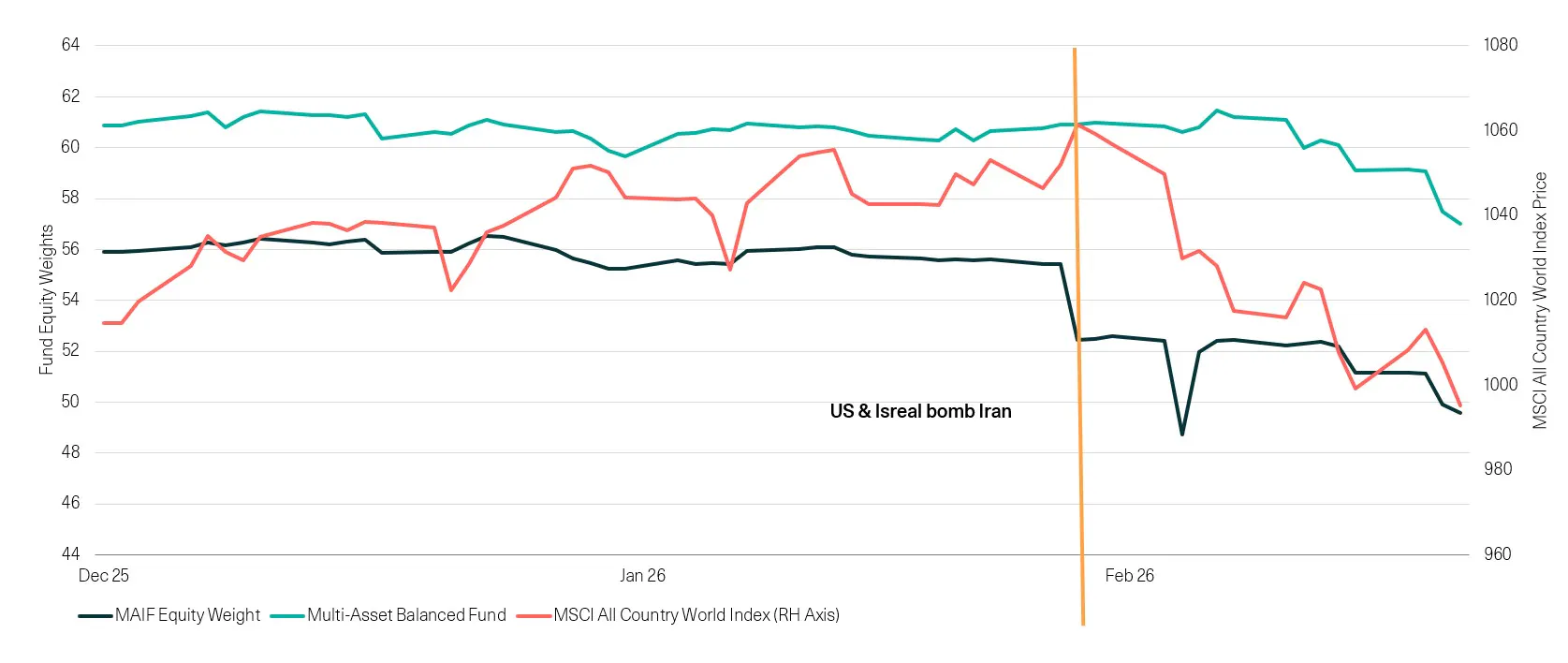 Multi-Asset Fund Equity Weights & MSCI All Country World Index