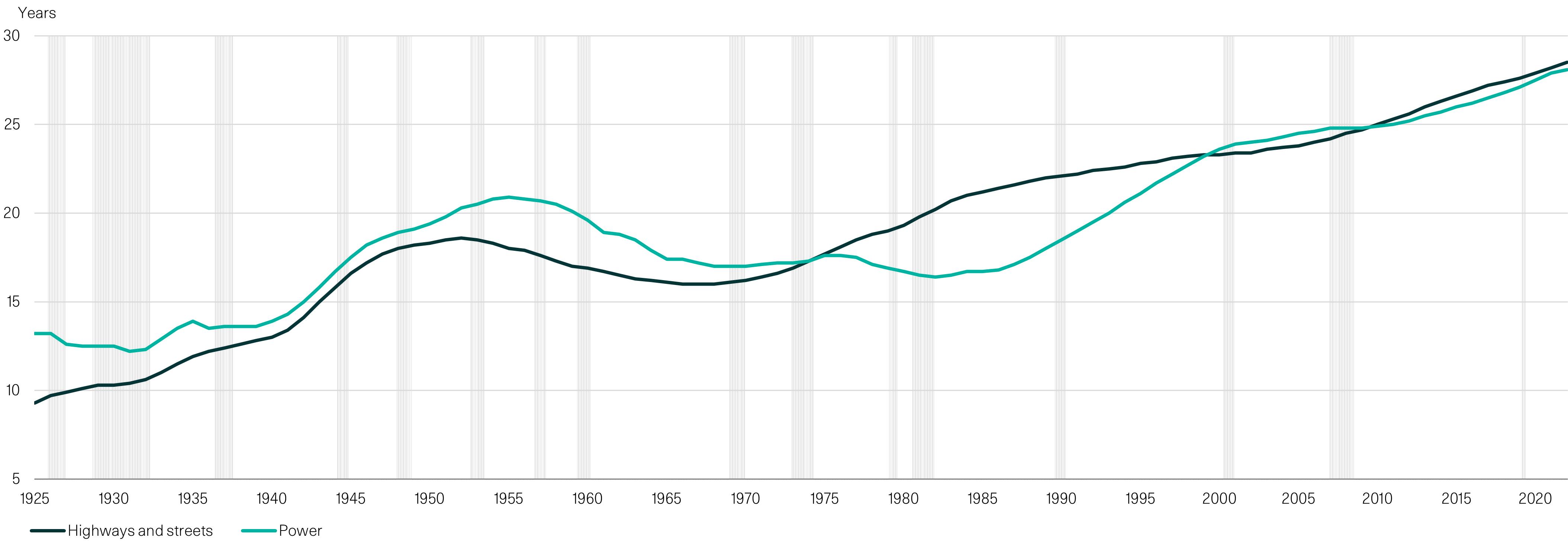 Before contemplating the opportunity set in new data centres or renewable assets, the existing infrastructure in the US has never been older. This is a similar picture in Europe and the UK. We therefore see a critical need for new investments on a replacement cycle, which will have to be partly funded by private capital given the stretched government balance sheets.