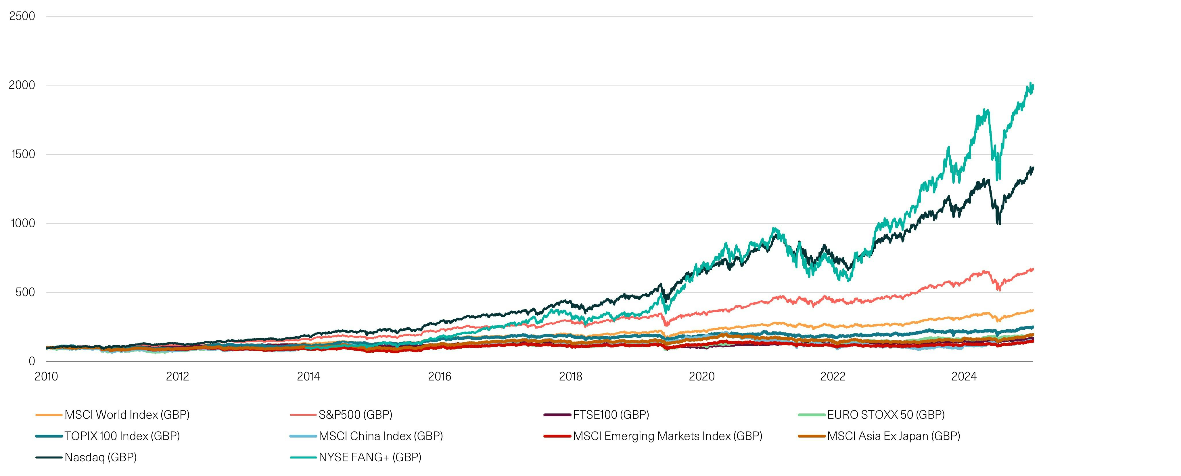 The chart above makes another point. Yes, some tech stocks have done extremely well. But hindsight with investing can be dangerous. Investors should always remember their objectives and appetite for risk at the outset of investing. It’s clear from the other market indices that across the board the long-term investor has done well, even through years with many challenges from pandemics, war in Europe and trade wars. Being long term, focused on your objectives and favouring risk adjusted returns allows investors to not be worried by inevitable short-term fluctuations or look back on performance with envy.