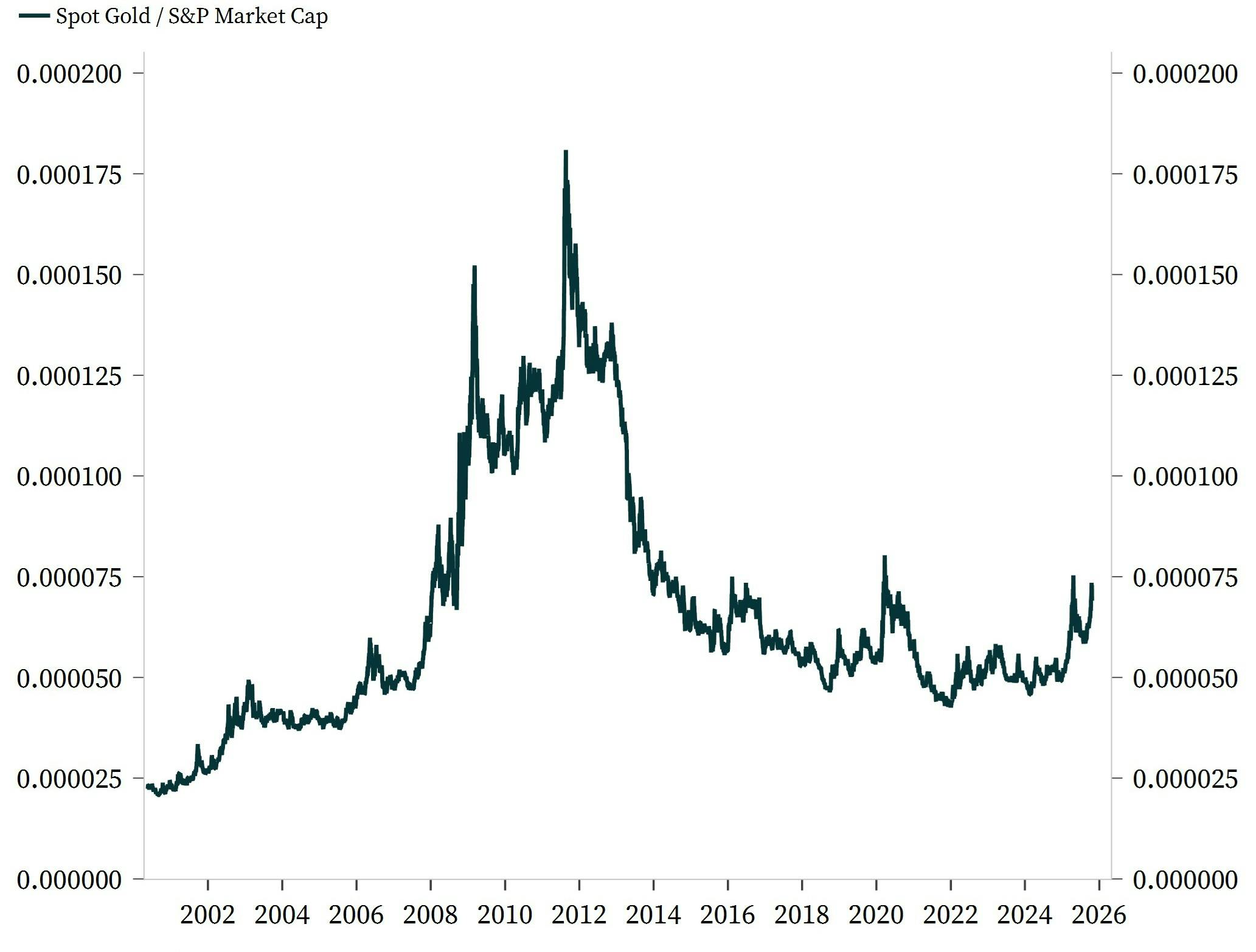 Gold and gold miners have had a great year but the long term structural story for the metal price remains intact given miners have not really increased production and are not, therefore, destroying the very healthy margins they are now enjoying. In addition, there are non-price-sensitive buyers of gold, such as central banks, who are not trying to make a profit but just hold fewer US dollars or government bonds so they buy gold regardless of the price; demand remains strong while supply is not responding, this is very positive for prices. The chart below also shows that the gold price is far from stretched relative to equities currently; this implies more investment related demand for gold is quite possible. And while bitcoin may be digital gold, it is obviously a lot easier for most funds to accept holding the real thing.