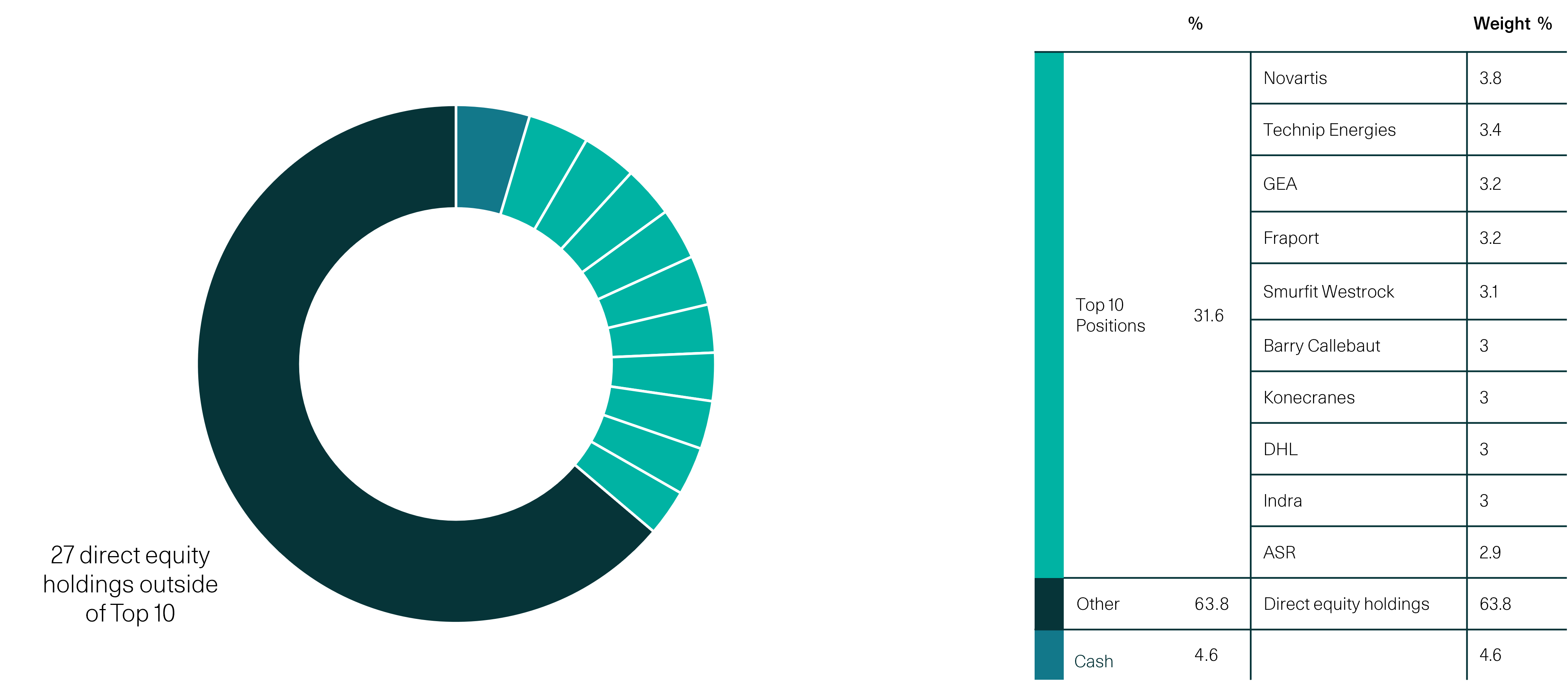 The pie charts below show that W1M equity funds (Global, European and Asia Pacific) are certainly not clinging to any index but hold between 36 and 61 stocks.