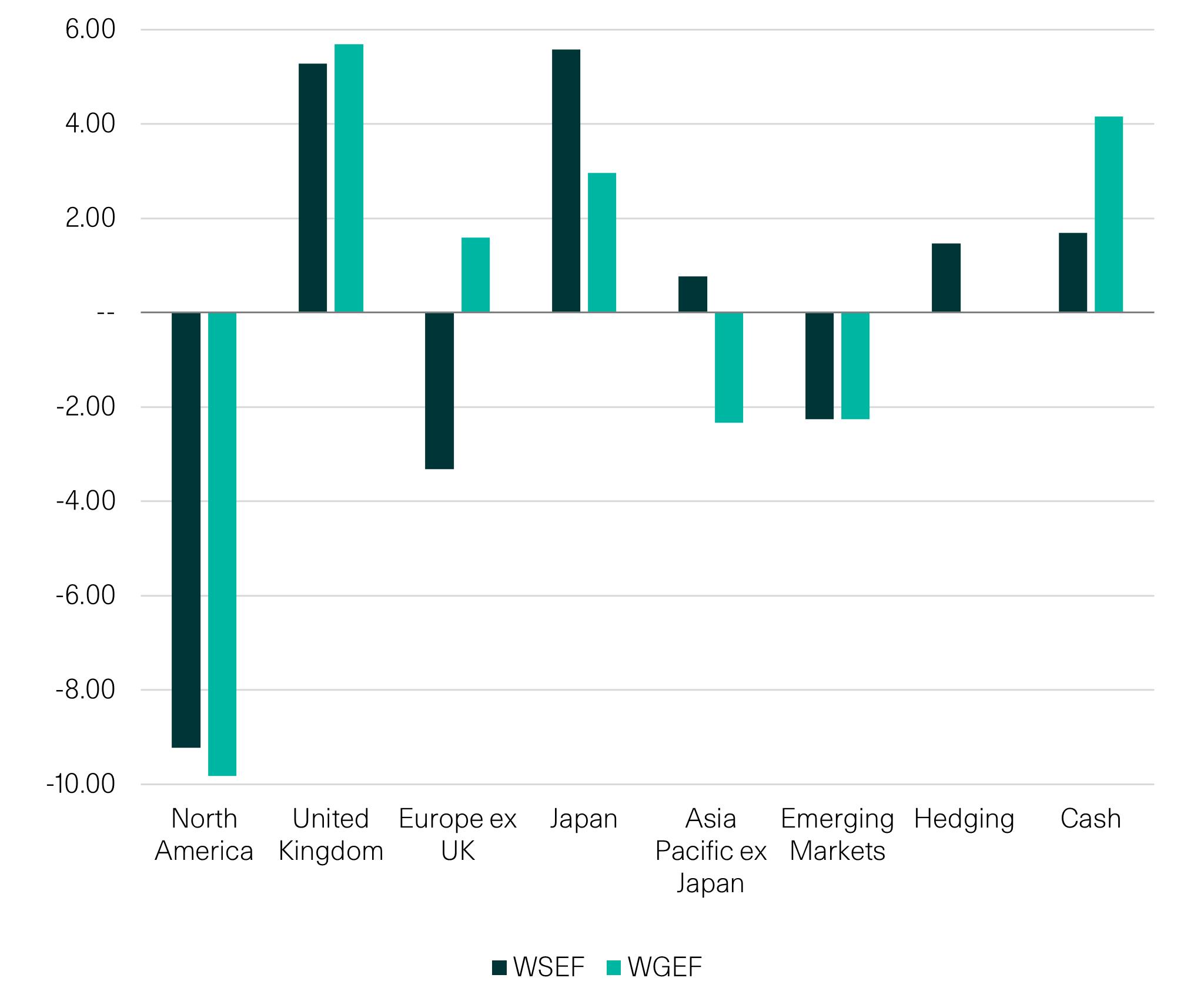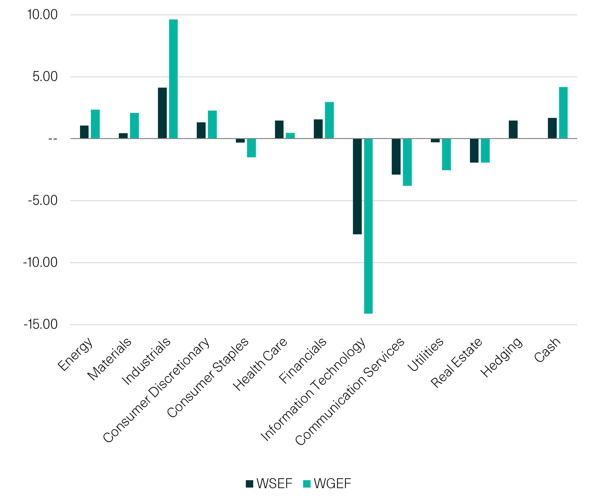Sector positioning relative to MSCI ACWI | Strategic Equity Fund (WSEF)