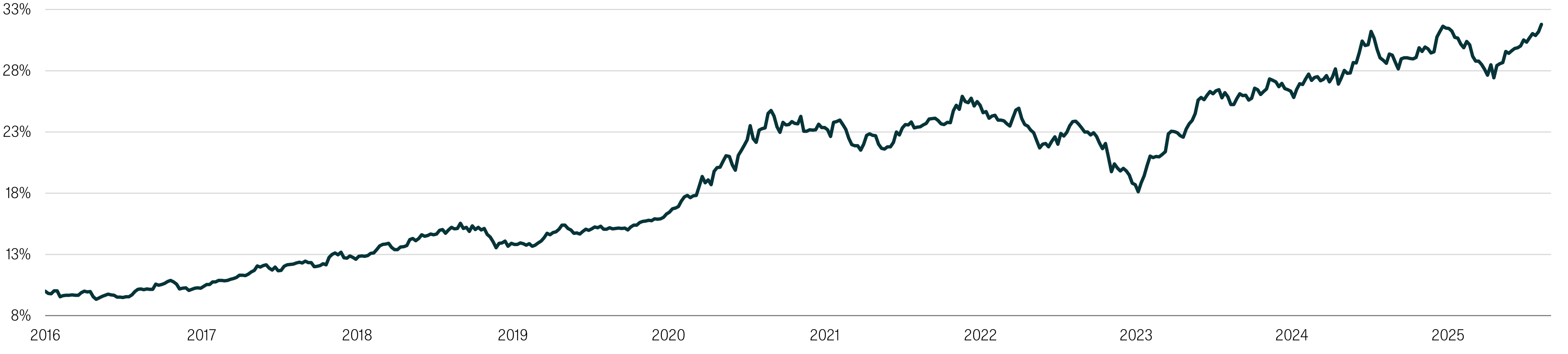 Magnificent Seven around a record third of S&P500 Market Capitalisation